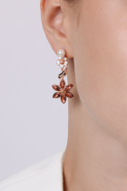 Rose-gold Blooming May earrings, featuring prominent motifs of flowers from blossoming May trees and small caring doves with white shell pearls, will be a standout yet delicate and feminine piece in your collection.
