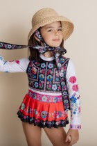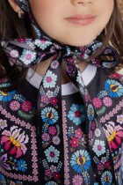 By purchasing this product, you automatically support the fundraiser for the restoration of the birthplace of writer Božena Slančíková-Timrava. Children's hat with a black ribbon featuring a pattern inspired by embroidery from Polichno – the birthplace of writer Božena Slančíková-Timrava. A unique accessory for sunny days that protects from the sun. The hat can be slightly adjusted from the inside to fit the width of the head. According to the STN EN 14682 standard, which relates to cords and drawstrings in children's clothing, it is important to note that the hat with ribbons is designed with the safety requirements of the standard in mind for children aged 7 and older. When younger children are using the hat, we recommend adult supervision, especially during activities where the ribbons may get caught.