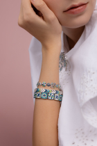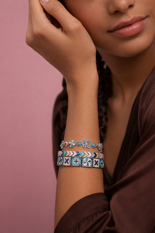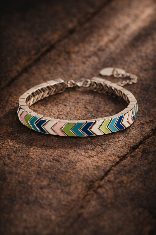 The Colors of Trenčín bracelet, made of rhodium-plated brass and complemented with enamel, is a classic piece suitable for everyday wear.