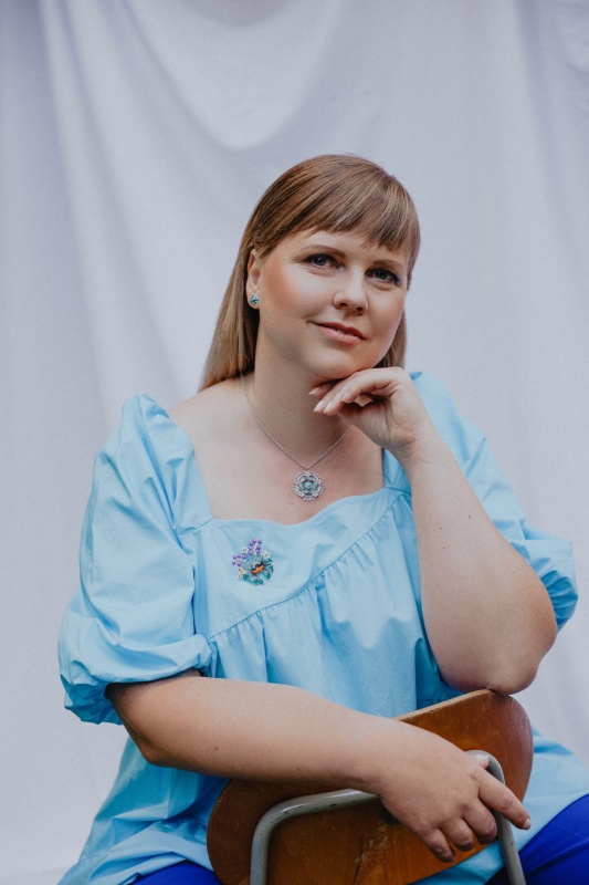 As a person gets older, she understands things she could never understand as a child. One must mature for some artworks, ideas, or understandings of others' actions. But unfortunately, in adulthood, we don't have time to go back to what we were actually learning in school during our childhood. Every day passes by in a flash, the days repeat themselves, and we often do not have time to stop and take the time for the deep thoughts that could shape us. When you read with an adult mind the biographies of many female writers whose names and works you memorized in sweat, you suddenly realize, you suddenly understand. Suddenly you see glimpses of the excitement of your teacher, who passionately quoted passages from novels. Suddenly you understand her, and you know that if you have a teacher who loves their job, they will be able to teach children to empathize with the world of adults. They don't have to understand it primarily; they just need to know how to empathize with it. Because the sooner we learn to empathize with others, the sooner we will become selfish. And stories are the best way to empathize with other people. The better the story is written, the more people it touches. And the better teacher we have at school, who wakes up our excitement, the sooner these stories get to us. That's why we felt the need to create something that would celebrate the creators of these stories and, at the same time, those who wear them. Because the more we move forward as a society, the more important the people who motivate us and enrich us with knowledge at the most fragile age will be. We have created 3 small collections dedicated to our famous female writers, we have studied the patterns of folk costumes from their home villages, and the pictures of them, we, undoubtedly, had to take with 3 amazing teachers, which were recommended to us by you.