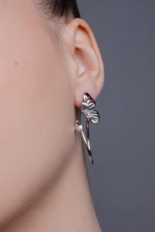 Hoop earrings inspired by the rare Apollo butterfly capture its delicate elegance and symbolism of freedom. Their design reflects the characteristic transparent wings with sensual eye-like markings, combining elegance with natural harmony.