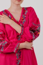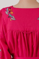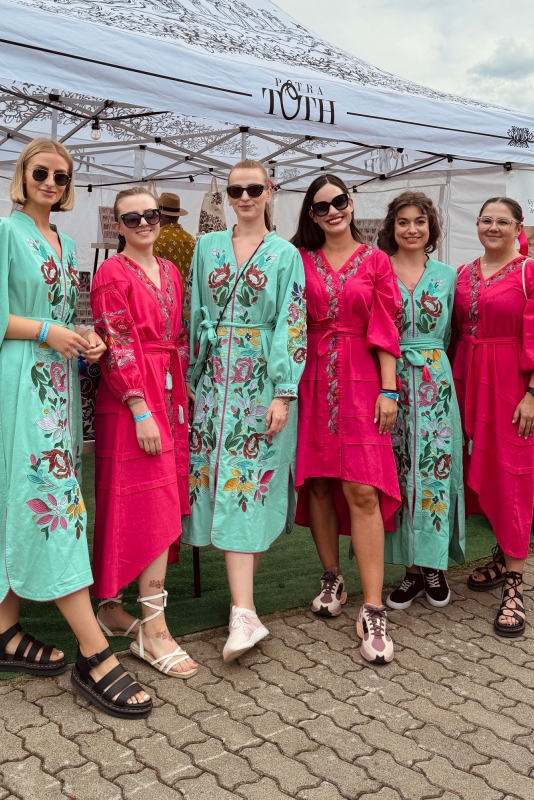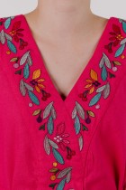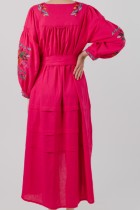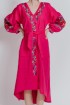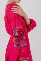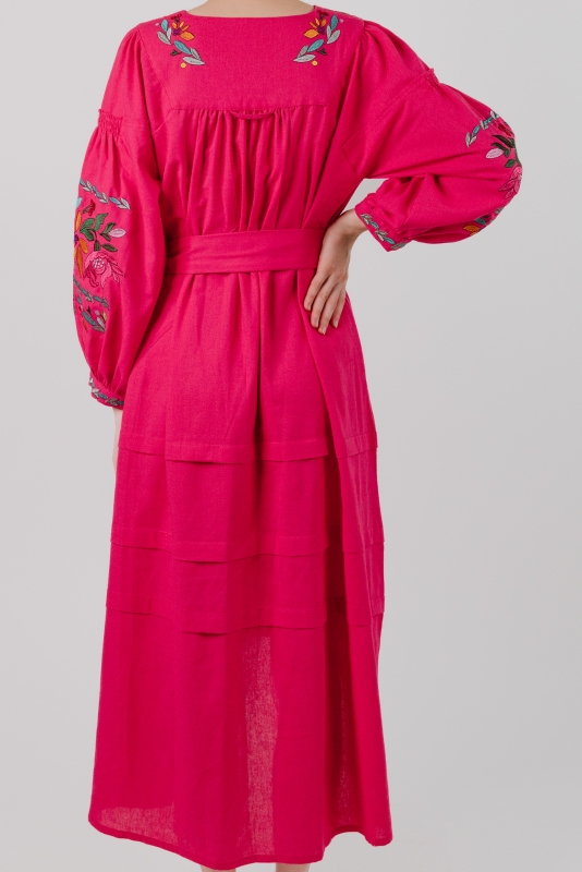 Pink dress embroidered with original embroidery that we created for our project Jeweled Up Journey through Slovakia. The dress is made of 100% cotton and comes in a universal size that fits figures from XS to L. The dress is A-cut with a belt that can be tightened at the waist.