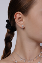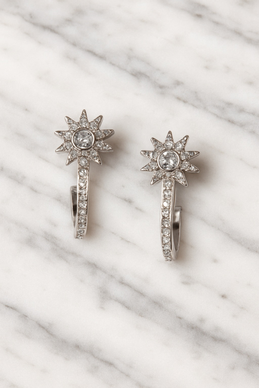 Rhodium-plated earrings with a comet motif, inspired by Empress Sisi and her uniqueness. The star with its delicate extension feels dynamic and radiant, like a trail of light that appears only for a moment, yet lingers in memory.