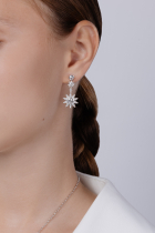 Rhodium-plated silver earrings with interconnected stars, inspired by Empress Sisi and her endless longing for freedom. Stars of different sizes form their own constellation—a story composed of moments that come together with meaning. A bold yet still elegant piece of jewelry.