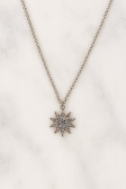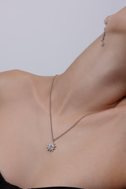 A rhodium-plated silver star pendant on a delicate chain, inspired by Empress Sisi and her longing for freedom. A subtle piece of jewelry that carries light close to the heart and reminds us that every woman has her own star.