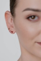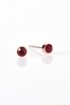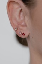 Small earrings with a tiny maroon crystal in the middle. Earrings are universal and can also be worn as a piercing.