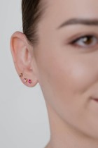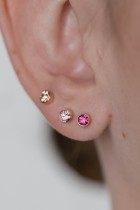 Small earrings with a tiny fuchsia crystal in the middle. Earrings are universal and can also be worn as a piercing.