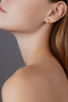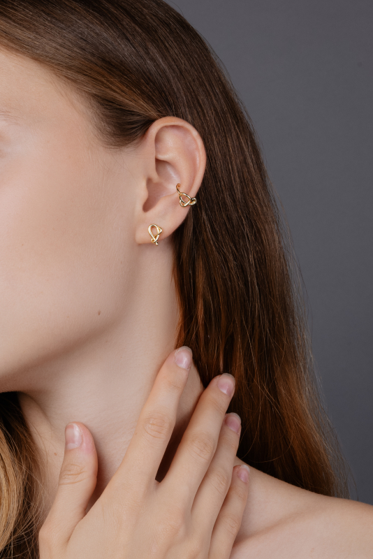 Small stud earrings with a gold Petra Toth logo. A delicate and timeless piece that highlights natural elegance and matches any outfit. The Petra Toth 18 series was created to celebrate the 18th anniversary of the brand and carries the symbolism of honoring its journey so far.