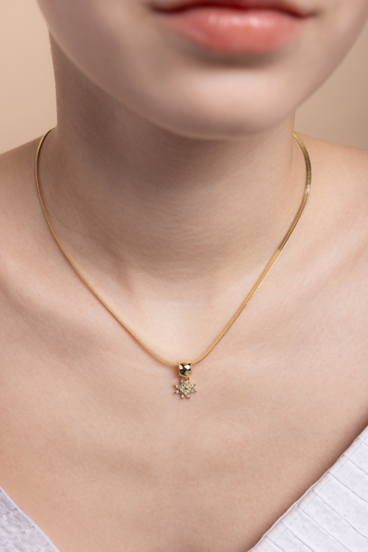 The Star of Balance pendant in gold plating with AB crystals symbolizes balance, spiritual wholeness, and protection — a person in harmony with the world.