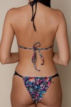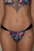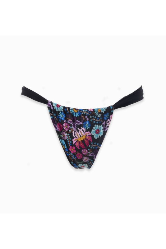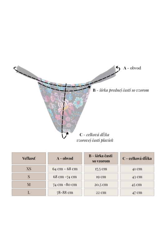 By purchasing this product, you automatically support the fundraiser for the restoration of the birthplace of writer Božena Slančíková-Timrava. Bikini bottom in black with a colorful pattern inspired by embroidery from Polichno – the birthplace of writer Božena Slančíková-Timrava. Design allows for gathering at the front and back. The model is 175 cm tall and is wearing size S.