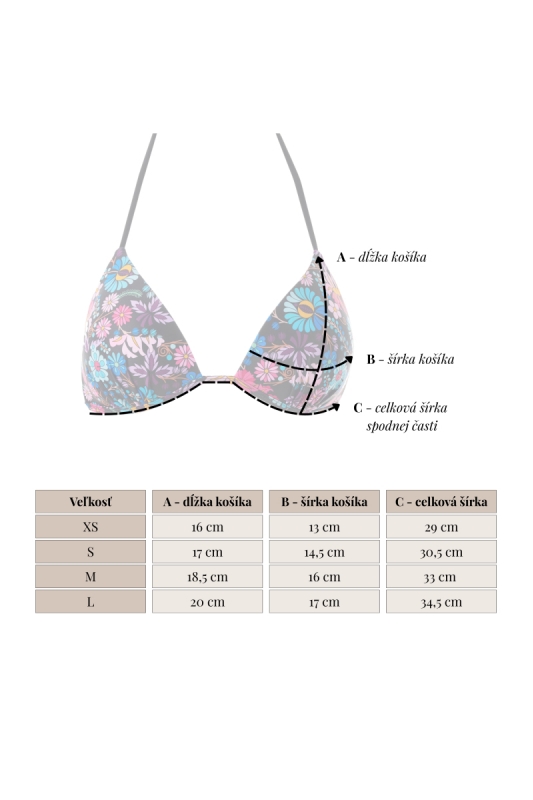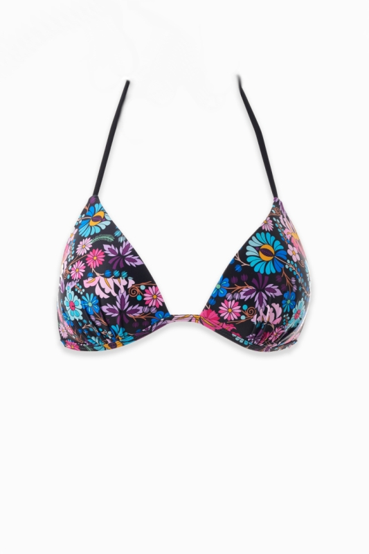 By purchasing this product, you automatically support the fundraiser for the restoration of the birthplace of writer Božena Slančíková-Timrava. Bikini top in black with a colorful pattern inspired by embroidery from Polichno – the birthplace of writer Božena Slančíková-Timrava. The model is 175 cm tall and is wearing size S.