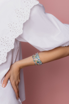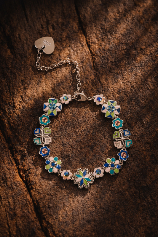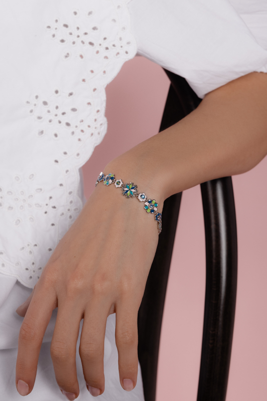 The Trenčín Flowers bracelet, made of rhodium-plated brass and complemented with enamel and Czech crystal, will bloom like a spring meadow on your wrist.