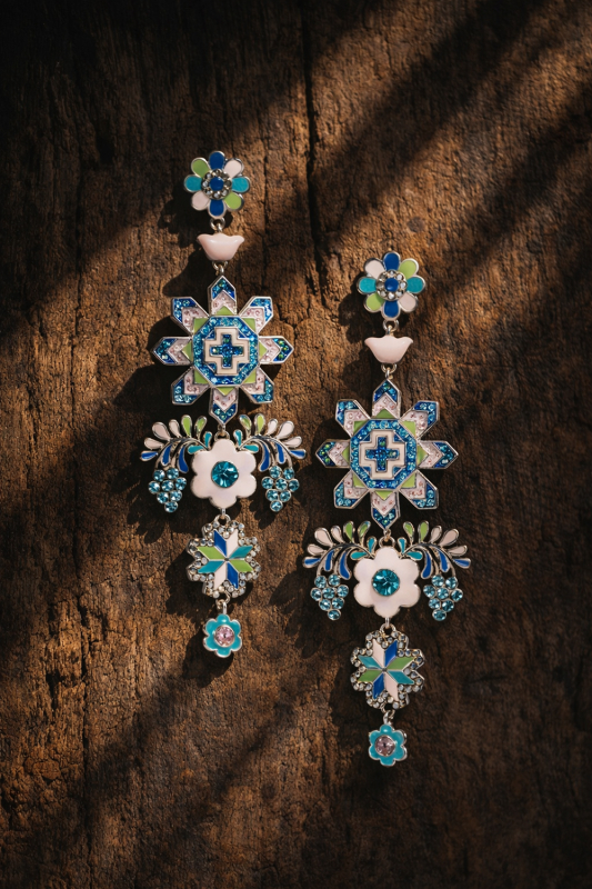 The color palette of the earrings is inspired by the visual identity of the Trenčín European Capital of Culture 2026 event.