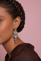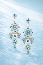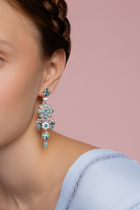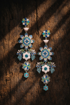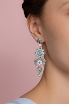 Unique large Trenčín Flowers earrings made of rhodium-plated brass, complemented with enamel and Czech crystal, designed to make you shine not only in the Trenčín region.
