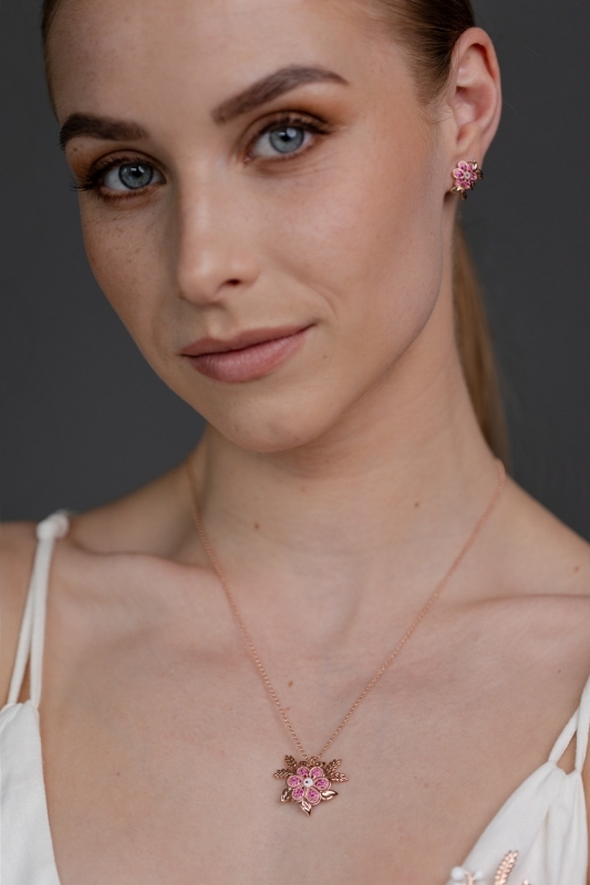 Malé kvietkové náušničky v ružovo-zlatej farbe venované slovenskej spisovateľke Terézii Vansovej a inšpirované krojom z jej rodnej obce Zvolenská Slatina. Séria bola vytvorená z úcty k popredným slovenským spisovateľkám a inšpirovaná večnosťou umeleckých diel, ktoré napísali a z ktorých do dnes čerpajú generácie. Nech aj tieto nevädnúce kvety pripomínajú Ich nekonečnú veľkosť a večnosť.