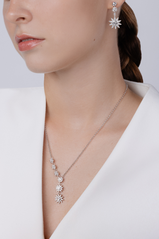 Jemný poródiovaný náhrdelník poskladaný z hviezd, ktoré spolu vytvárajú malé osobné súhvezdie. Inšpirovaný cisárovnou Sisi a jej ikonickými hviezdami symbolmi slobody, snívania a vnútornej sily. Elegantný šperk, ktorý pôsobí ľahko, žensky a nadčasovo, krásny samostatne aj v kombinácii s ďalšími kúskami kolekcie Sisi.