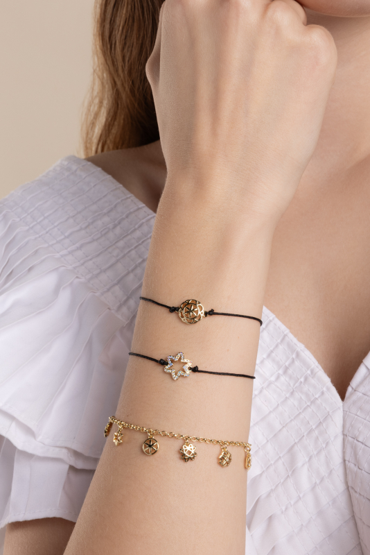 Náramok na šnúrke s príveskom "Ochranná Perúnica" v zlatom pokovení. Symbolizuje silu života, ochranu a rovnováhu.