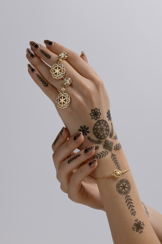 Symbolika je neoddeliteľnou súčasťou kultúrneho dedičstva Slovenska. Hoci dnes už často vnímame symboly len ako ozdobný prvok, v minulosti niesli hlboké duchovné posolstvo. Boli tichým jazykom, ktorým človek rozprával s prírodou, s neviditeľnými silami i so svojimi predkami. My sme ich spracovali do série nadčasových šperkov, kde každý šperk v sebe nesie skrytý význam. Zachované symboly vo výšivkách a rezbách tak neostanú len ozvenou minulosti, ale vstupujú spolu s nami do dnešného sveta ako umelecké diela, nesúce v sebe tichú silu dávnych príbehov.