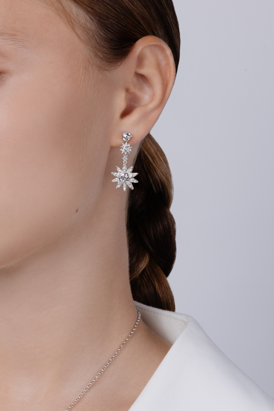 Poródiované strieborné náušnice s prepojenými hviezdami, inšpirované cisárovnou Sisi a jej nekonečnou túžbou po slobode. Rôzne veľkosti hviezd vytvárajú vlastné súhvezdie. Príbeh zložený z okamihov, ktoré spolu dávajú zmysel. Výrazný, no stále elegantný šperk.