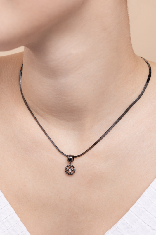 Prívesok Stabilita v gun pokovení s bielymi krištáľmi. Symbolizuje harmóniu, stabilitu, duchovnú rovnováhu a jednotu.
