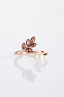 Ružovozlatý prsteň Lístky s perličkou zakončený z jednej strany motívom ružových lístkov a z druhej strany motívom bielej perličky vyrobenej z mušle. Skrýva v sebe jemnú, nadčasovú eleganciu.